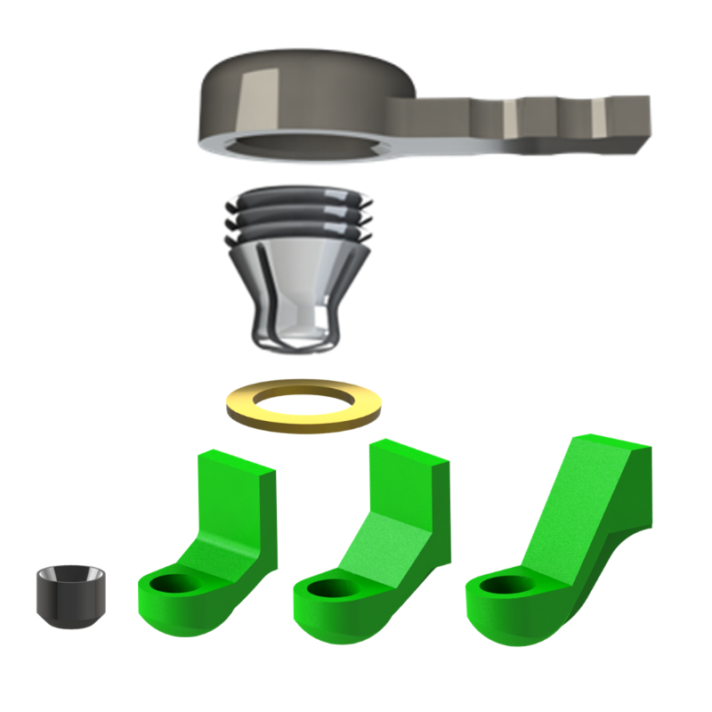 Kit with M2 threading retention part for acrylic retention, with TITANAX female for cementation. For use in post copings and bar constructions.
