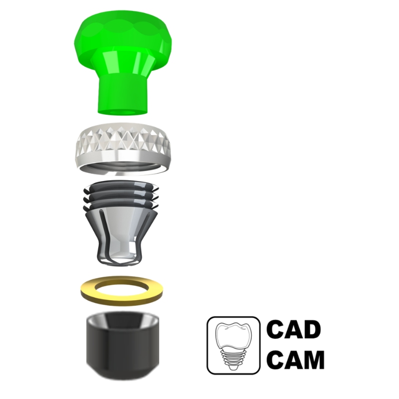Kit with M2 threading retention part for bonding, with TITANAX female for cementation. For CAD-CAM users.